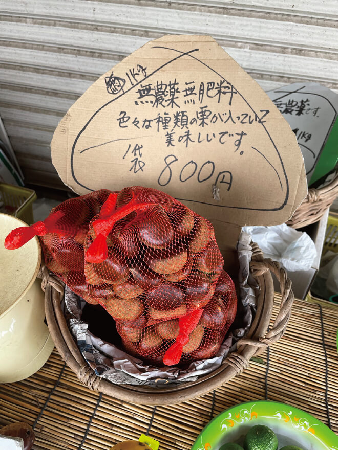 拾わなくても、すだちや栗を買うこともできます。せっかく来たのに拾わないのはもったいない、と思いましたが、もしかすると自分で拾うより質の良いものが入っているのかも、と思ってみたり。