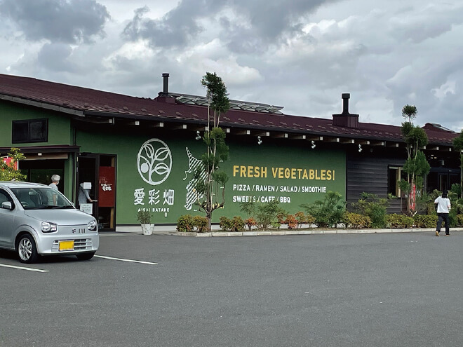 さて、こちらはカズサの郷 愛彩畑のご紹介ページ。愛彩畑というのは農業と食をテーマにした施設群のひとつで、この付近一帯に、いちご園・くるベリーファーム、トマト園・とまとガーデン、会員制の貸し農園・アグリライフクラブが隣接しています。愛彩畑の建物には、らーめん愛彩流、PIZZA KURURI、サラダとスムージーなどのLOVE VEGEという3コーナーと、農産物直売所が併設されていて、どのお店も野菜たっぷりでヘルシー、とても美味しくて人気です。