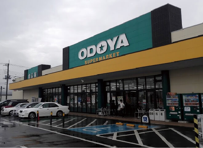 おどや君津中島店。南千葉県人には欠かせないのがスーパーおどや。君津ICで降りて現地へ向かう場合には、こちらでお買い物が便利です。隣接してウエルシア薬局がありますので、滞在時に必要なものはだいたい揃うでしょう。