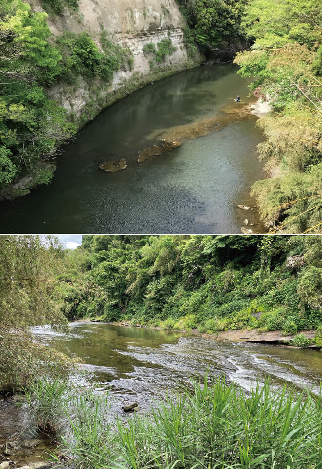 貸別荘・大戸見の家は小櫃川に囲まれています。歩いてすぐ40cm前後のヘラブナが釣れるというポイントに。亀山湖ではブラックバス、さらに上流の七里川温泉あたりではウグイやオイカワが釣れます。また例年、小櫃川漁協がアユの放流をしています。6月15日頃から鮎釣りが解禁となり、上流の七里川から大戸見の家を経て下流の木更津東ICくらいまでが対象地域、遊漁日券1,000円だそうです。