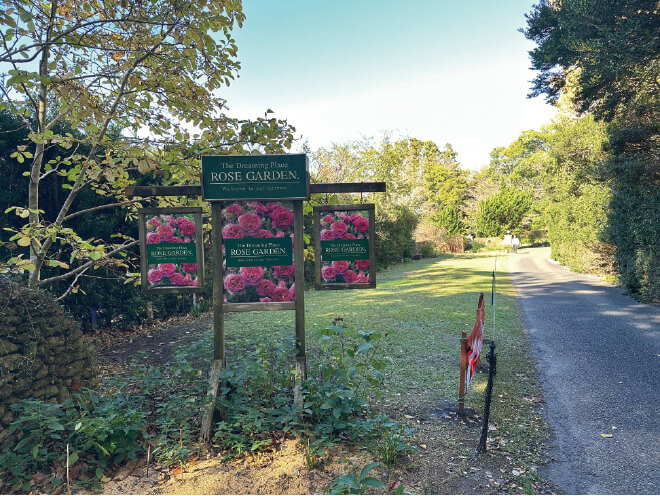 ドリプレ・ローズガーデン。5000坪の敷地に作られた、個人所有の英国式庭園。季節毎に咲き誇る花々を楽しめるほか、カフェやアンティークショップを併設しており、ゆっくりとした時間を過ごすことができます。あちこちに猫たちがくつろいでいて、ゆっくりと時間が流れています。