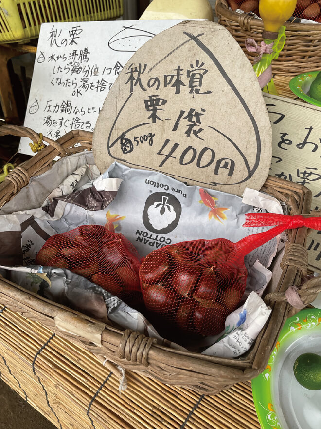 拾わなくても、すだちや栗を買うこともできます。せっかく来たのに拾わないのはもったいない、と思いましたが、もしかすると自分で拾うより質の良いものが入っているのかも、と思ってみたり。