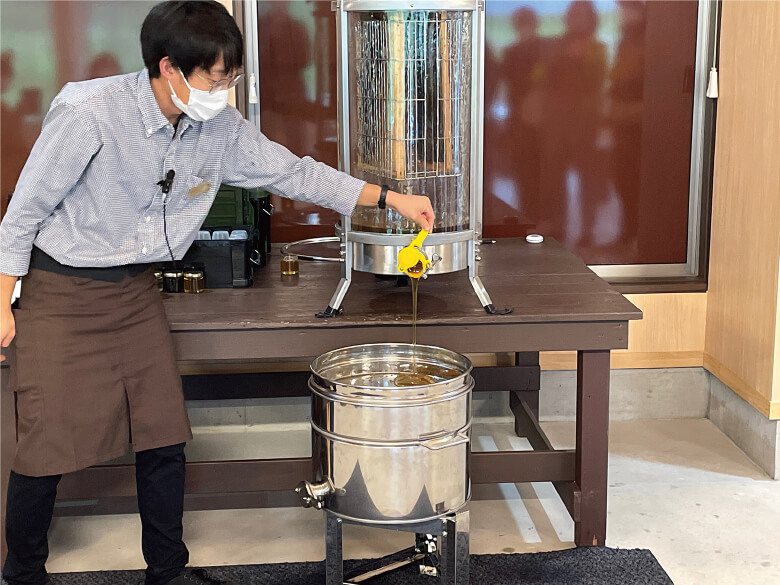 はちみつの製造工程が気軽に見学できるお店。おおむね16時くらいまで、30分に一度くらいの間隔で案内を始めてくれます。軽めの体験ツアーといった感じ。また、人類最古の酒と言われるハチミツのお酒・ミードも製造しています。はちみつ・ミードとも試食コーナーがあってお試しの上、購入が可能。はちみつは元になる花によって色も味も大きく変わるのでぜひお試しを。100g、300gとその場で詰めてくれます。