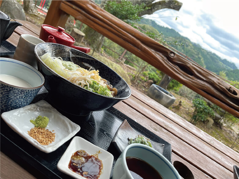 敷地内の源泉からわき出る炭酸水素塩泉は、この千葉中央部には多く見られる茶褐色の黒湯、美人の湯として知られています。日中は上の写真の岩風呂と露天風呂が日によって男女入れ替わり、日帰り入浴700円、ランチ利用なら無料で楽しめます。そのほか貸し切り専用の檜風呂も。さらに嵯峨和の魅力は料理にあります。豚と野生のイノシシのいとこ鍋、ヤマメやアユなどの川魚料理やおいしい蕎麦。席は亀山湖を見下ろし、テラス席もあります。料理を待つ間にささっとお風呂に入っても良し、旅行の気分を満喫できるお店です。