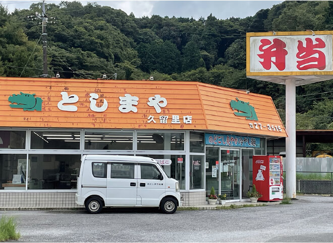 みどりのカバでお馴染みのとしまや弁当・久留里店。今、はじめて緑のカバに気づきました。ペットボトルの飲料と、スーパーのお総菜コーナーのように出来た弁当が多少並んでいるほか、注文してから作る弁当もあります。なんと朝5時から営業。