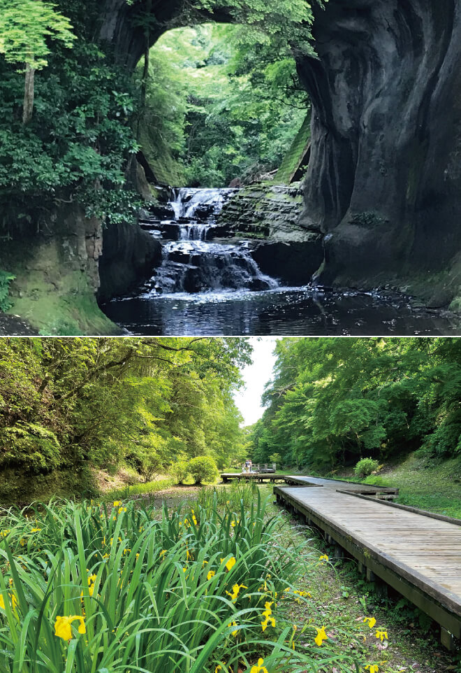 紅葉でも有名な養老渓谷。ゆるやかに100mを続く粟又の滝をはじめとする5つの滝めぐりは、やや急な階段や飛び石もありつつ2kmのハイキングコース。マイナスイオンたっぷりで気持ちの良いコースです。付近の養老温泉は黒湯で有名、小さく古びた宿が多いですが、日帰りでも一見の価値あり。